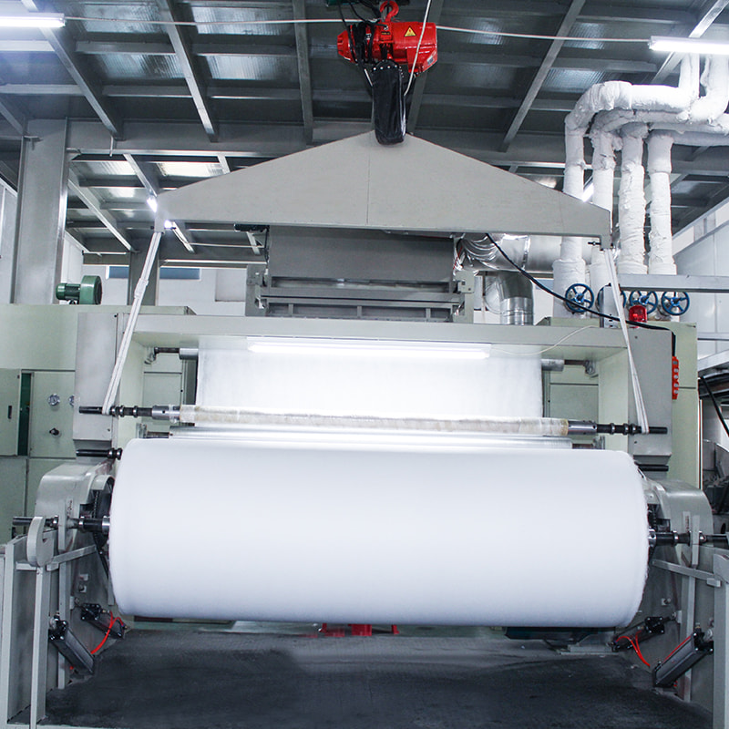 Próiseas Spinning: Ansin déantar an leá daite a chasadh isteach i bhfiliméid ag an bhíoma sníomh, ag teacht leis an mbonn don fhabraic neamhfhite.