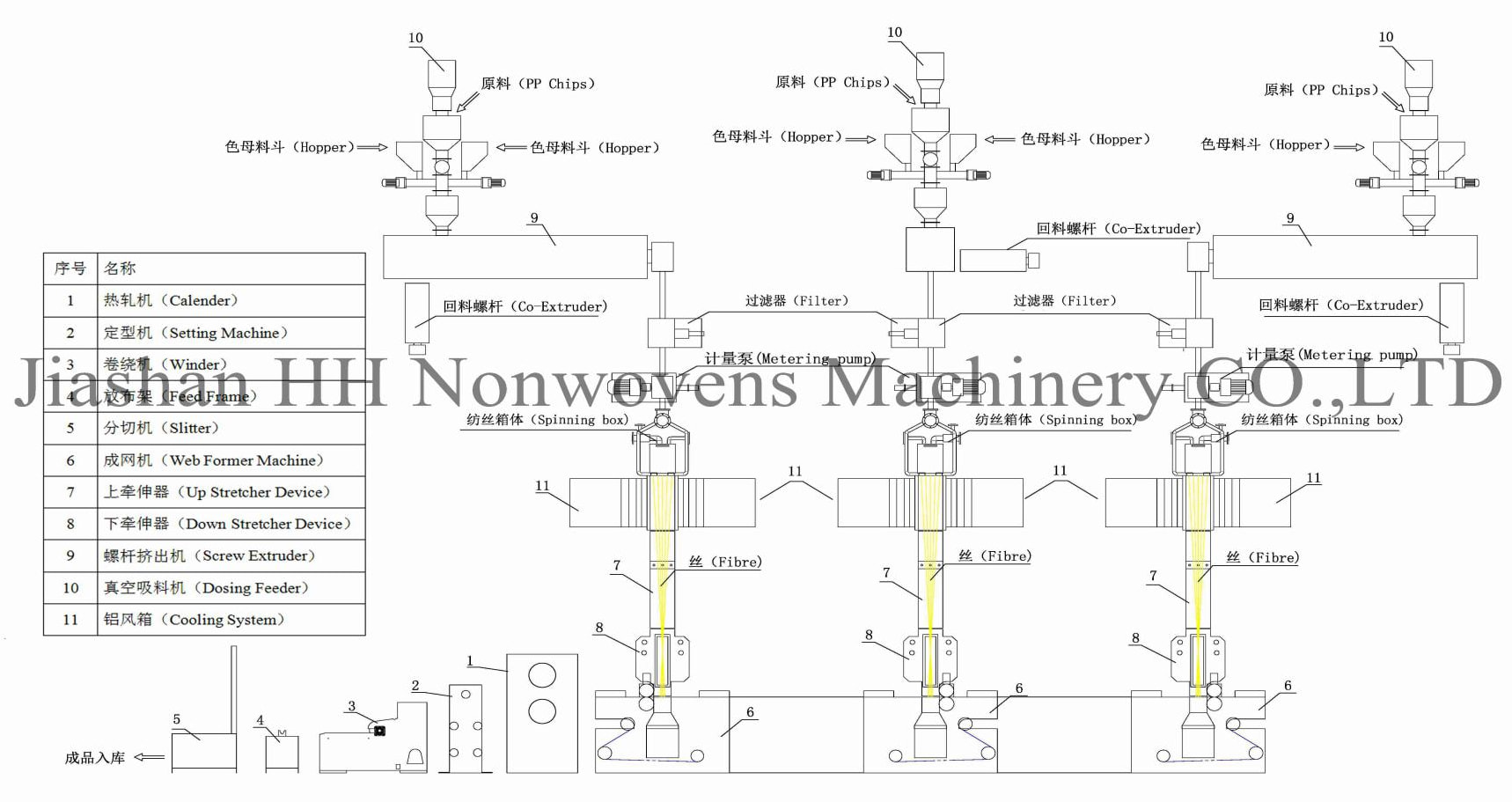 Is é JIASHAN HH Nonwovens Machinery CO., Ltd an tSín Bhíoma Triple (SSS) Meaisín neamhfhite spunbond Déantóirí. Le cáilíocht chobhsaí agus oibriú éasca na líne táirgeachta nonwoven, cuimsíonn ár dtáirge rialta bhíoma aonair, bhíoma dúbailte, SSS, SMS, SMMS, SSMMS agus araile, is é an leithead rialta 1600mm, 2400mm, 3200mm, 4000mm, 4200mm; Táimid tar éis deimhniú bainistíochta córas cáilíochta IS09001 a rith, Tá an líne iomlán uathoibrithe go mór. Tá an líne iomlán dea-struchtúrtha agus éasca le feidhmiú. Tá teicneolaíochtaí déanta, ardfheidhmíochta agus iontaofa ag eilimintí rialaithe. Tá an líne iomlán á rialú ag PLC agus á oibriú le scáileán tadhaill. Is féidir leithdháileadh an phríomhfhráma agus an trealaimh chúnta a dhearadh agus a choigeartú go speisialta de réir riachtanais na gcustaiméirí.