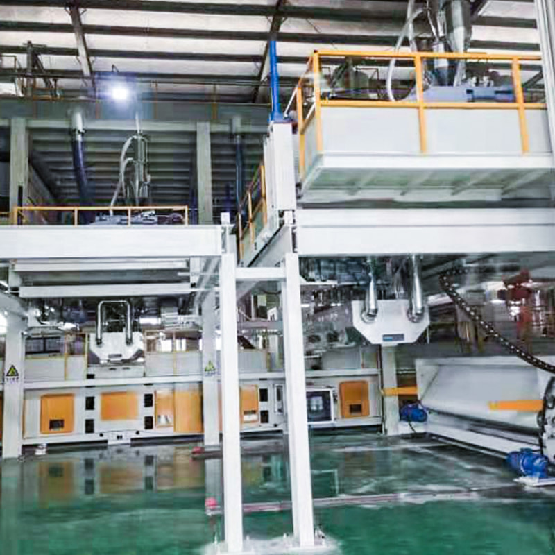 Is é JIASHAN HH Nonwovens Machinery CO., Ltd an tSín Cúig bhíoma (SMMSS) Spun-Melt meaisín nonwoven Déantóirí. Le cáilíocht chobhsaí agus oibriú éasca na líne táirgeachta nonwoven, cuimsíonn ár dtáirge rialta bhíoma aonair, bhíoma dúbailte, SSS, SMS, SMMS, SSMMS agus araile, is é an leithead rialta 1600mm, 2400mm, 3200mm, 4000mm, 4200mm; Táimid tar éis deimhniú bainistíochta córas cáilíochta IS09001 a rith, Tá an líne iomlán uathoibrithe go mór. Tá an líne iomlán dea-struchtúrtha agus éasca le feidhmiú. Tá teicneolaíochtaí déanta, ardfheidhmíochta agus iontaofa ag eilimintí rialaithe. Tá an líne iomlán á rialú ag PLC agus á oibriú le scáileán tadhaill. Is féidir leithdháileadh an phríomhfhráma agus an trealaimh chúnta a dhearadh agus a choigeartú go speisialta de réir riachtanais na gcustaiméirí.